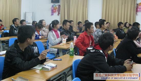 | | On the evening of October 29th, the first English Salon of Innovation Experimental College was held in the college multimedia classroom, themed Cold Autumn, Warm Hearts. The foreign teacher Lucase Neally and members of college English club, along with some students of grade 2011 and 2010, in total over 40 people joined the party and had a wonderful English Night of English listening, speaking and performance.
