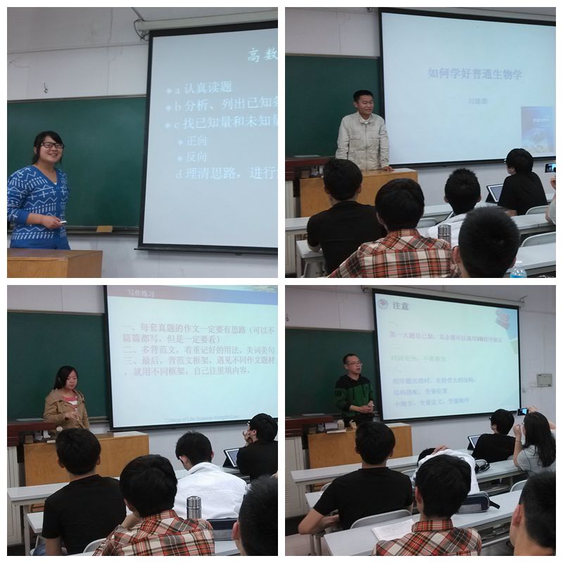 为充分发挥朋辈引领作用,让2013级学生更好地备战四六级和期末考试, 日前,我院在北校区N8214教室举办了朋辈学习经验分享会。党亚萍、冯天华等5名高年级学生围绕高等数学、英语、有机化学等课程学习与2013级近百名学生进行了经验分享和交流,答疑解惑。