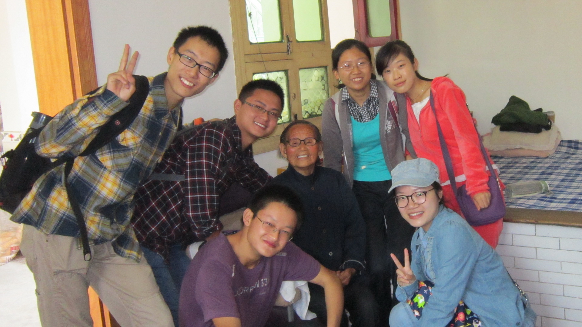 志愿者与老人合影