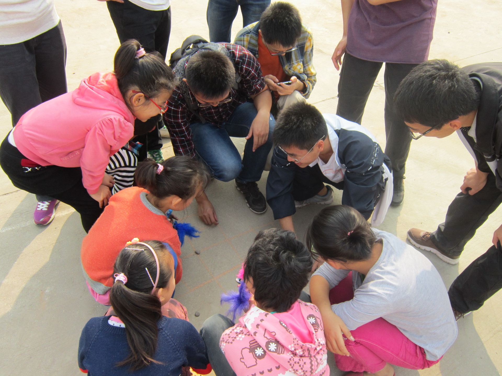 志愿者与村里孩子们一起游戏