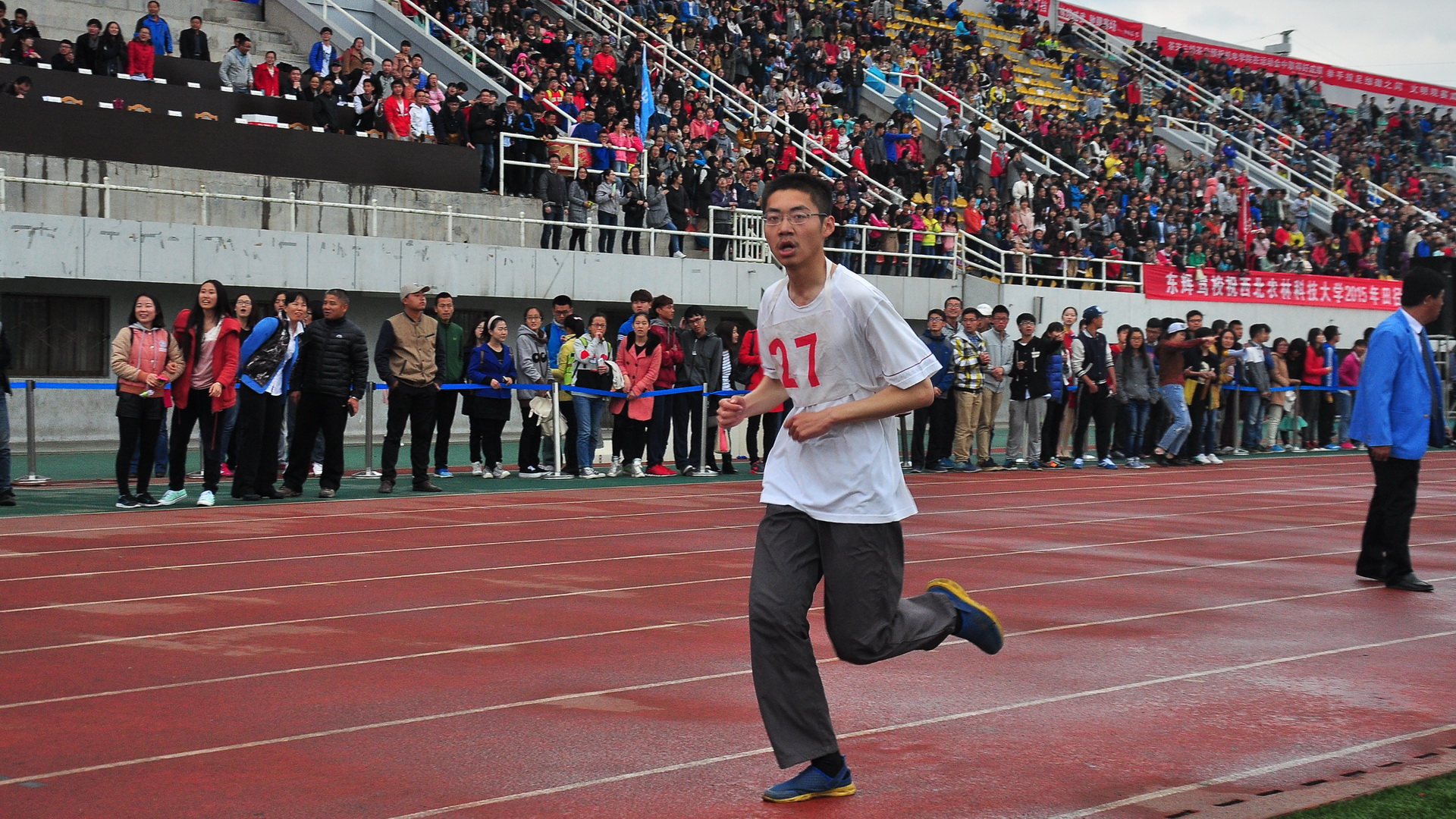800米,李广?拼尽全力1500M,是耐力的挑战是不懈的的坚持5000米,张哲林毅然坚持点燃激情奋力向前风雨无法阻挡我对终点的渴望汗水湿透衣背,也要奔向终点坚持,创新男儿不言放弃烈日当空,我亦不言放弃手中的接力棒,传递了信任,点燃了激情速度永远是我不懈的追求
