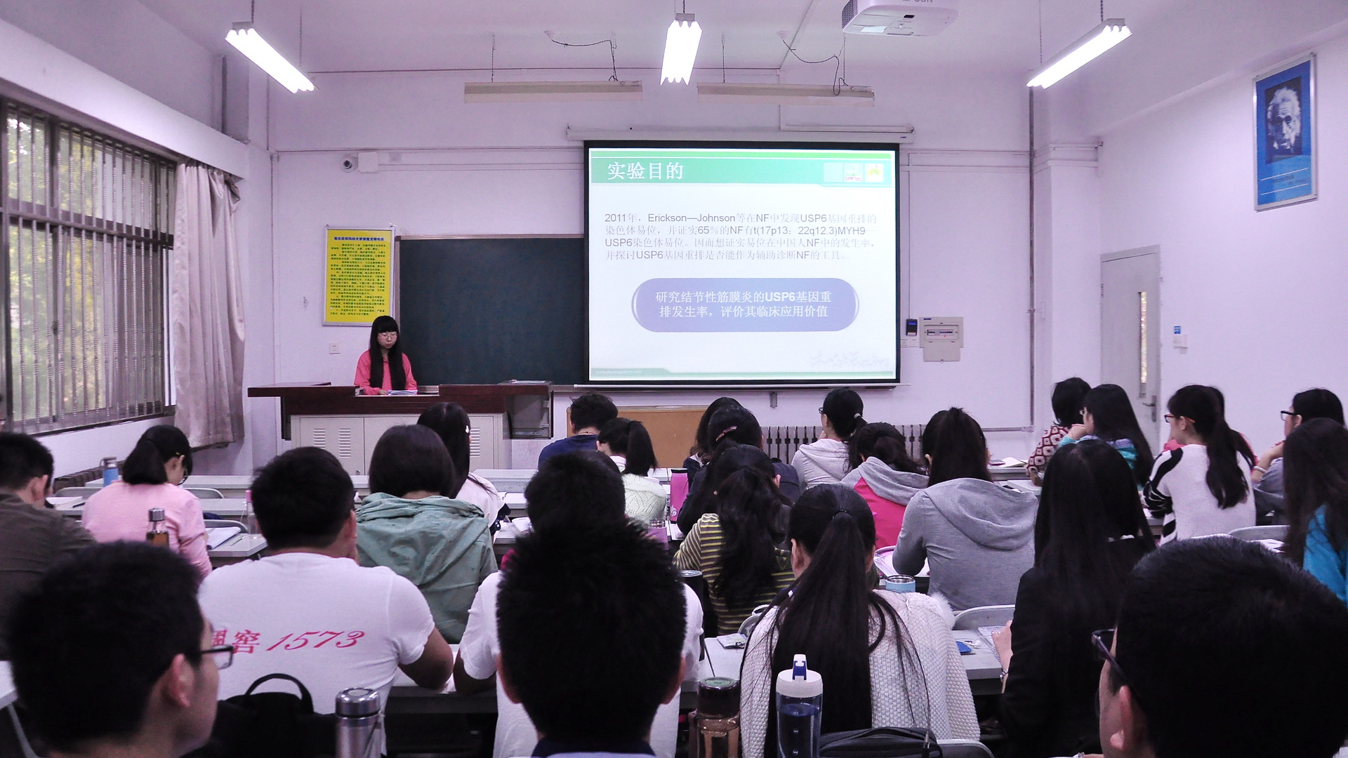 整堂课分为ppt汇报、提问、老师讲评三个部分。课上,同学们结合精心制作的ppt,把文章脉络进行了大体地分析,并对其中使用到的实验方法与思维方式进行了深入探讨,另外,同学们还发散思维,对文章的不足之处提出了自己的看法,并畅想了下一步应该进行的工作。