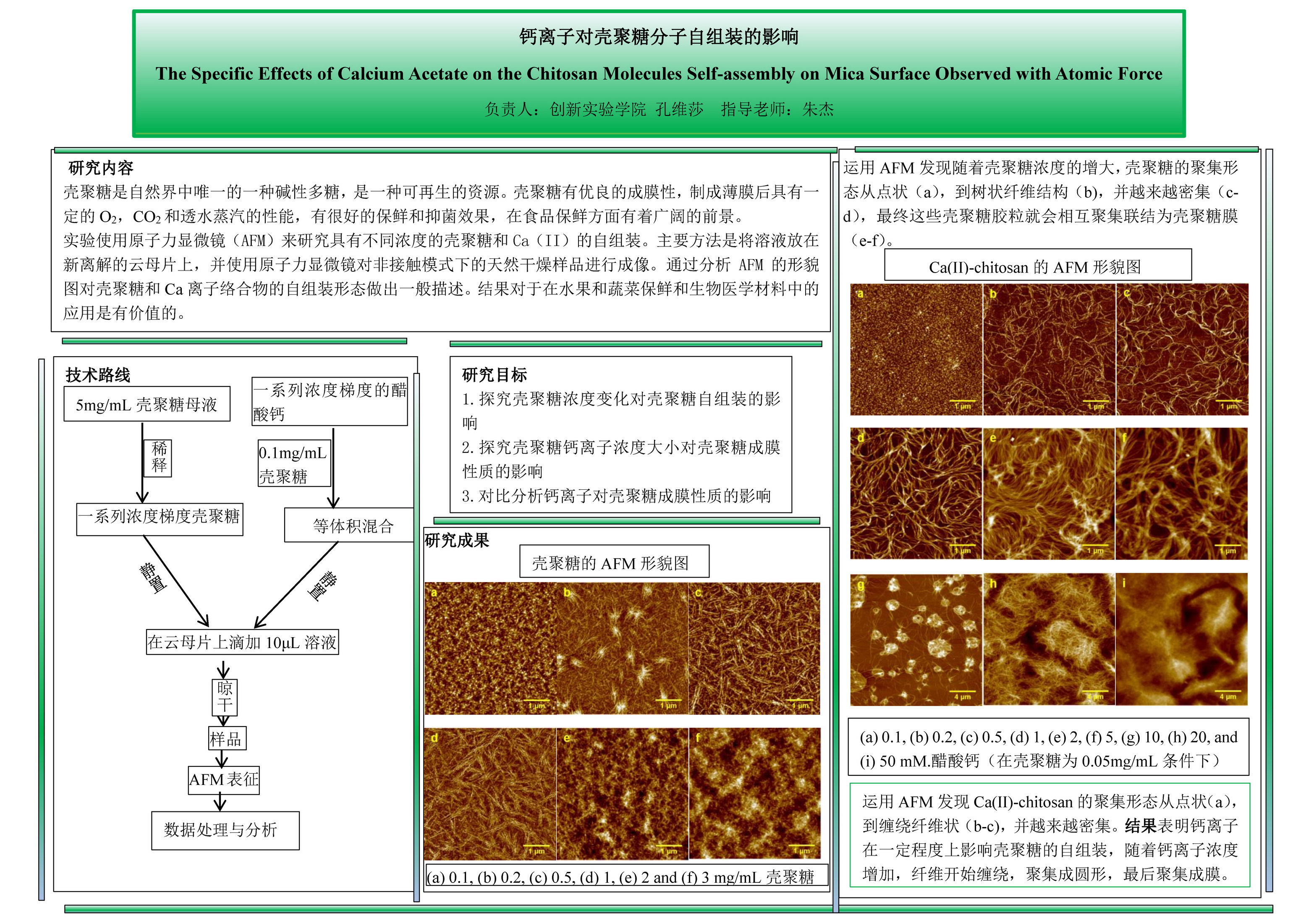 16 | 钙离子对壳聚糖分子自组装的影响 | 创新学院 | 孔维莎 | 费圣颖 | 三等奖 |