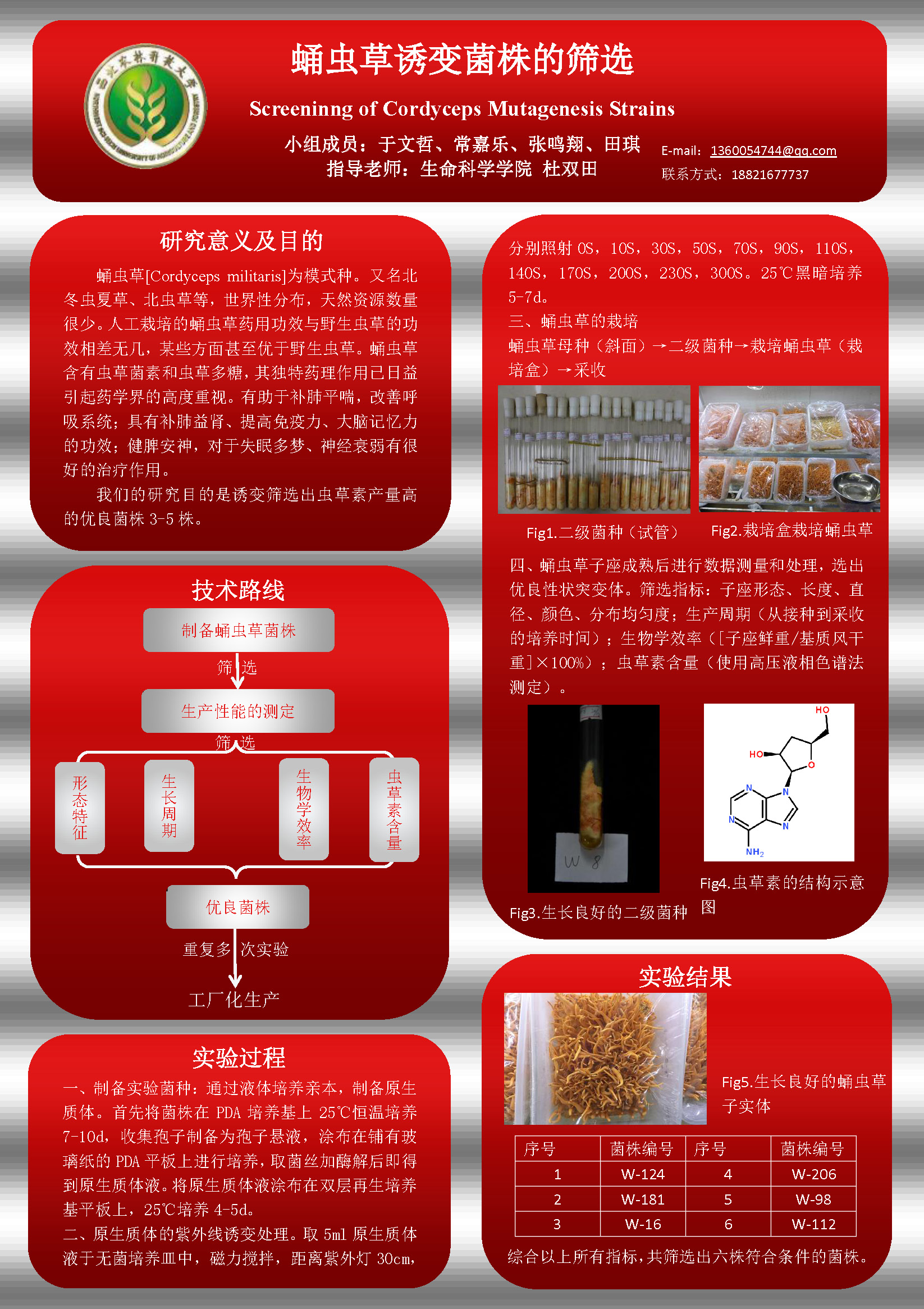 10 | 蛹虫草诱变菌株的筛选 | 创新学院 | 于文哲 | 常嘉乐 张鸣翔 田 琪 |