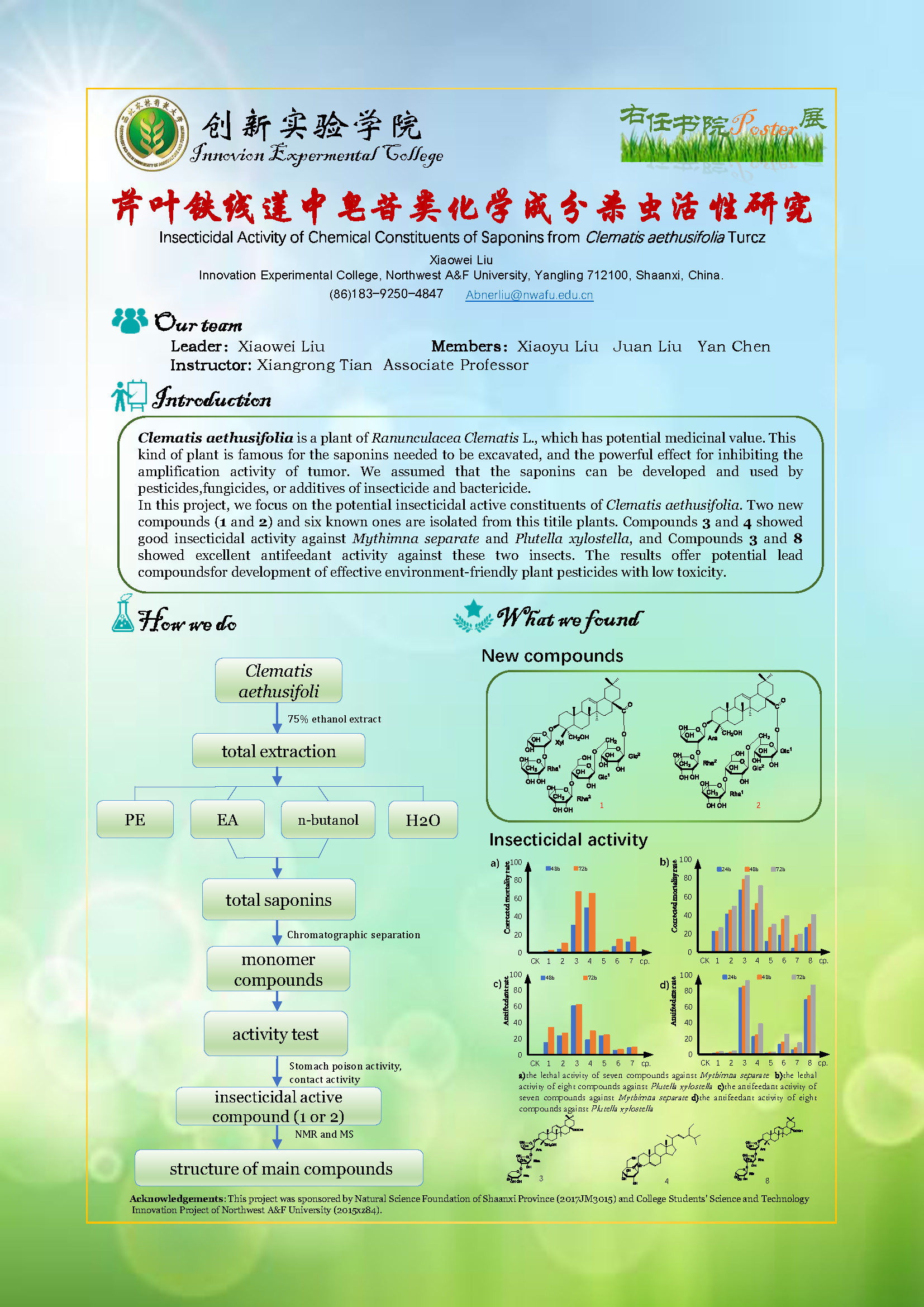 31 | 芹叶铁线莲中皂苷类化学成分杀虫活性研究 | 创新学院 | 刘小伟 | 刘晓宇 刘 娟 陈 艳 |