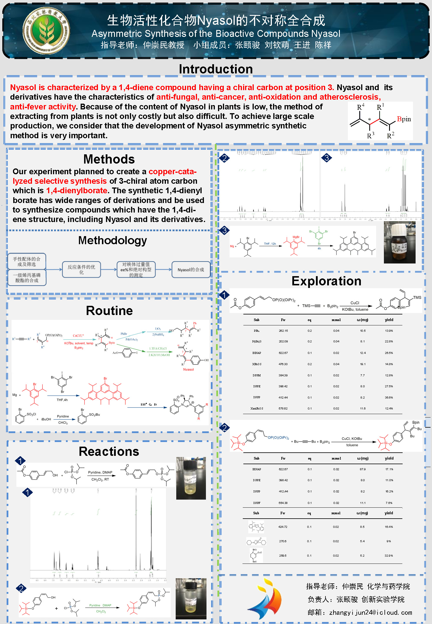 11 | 生物活性化合物Nyasol的不对称全合成 | 创新学院 | 张颐骏 | 刘钦萌 王 进 陈 祥 |