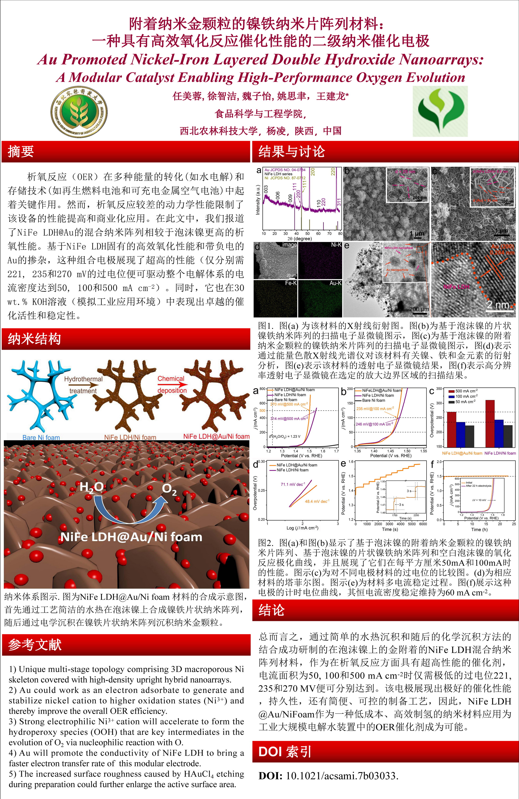 7 | 附着纳米金颗粒的镍铁纳米片阵列材料:一种具有高效氧化反应催化性能的二级纳米催化电极 | 食品学院 | 任美蓉 | 徐智洁 魏子怡 姚思聿 |