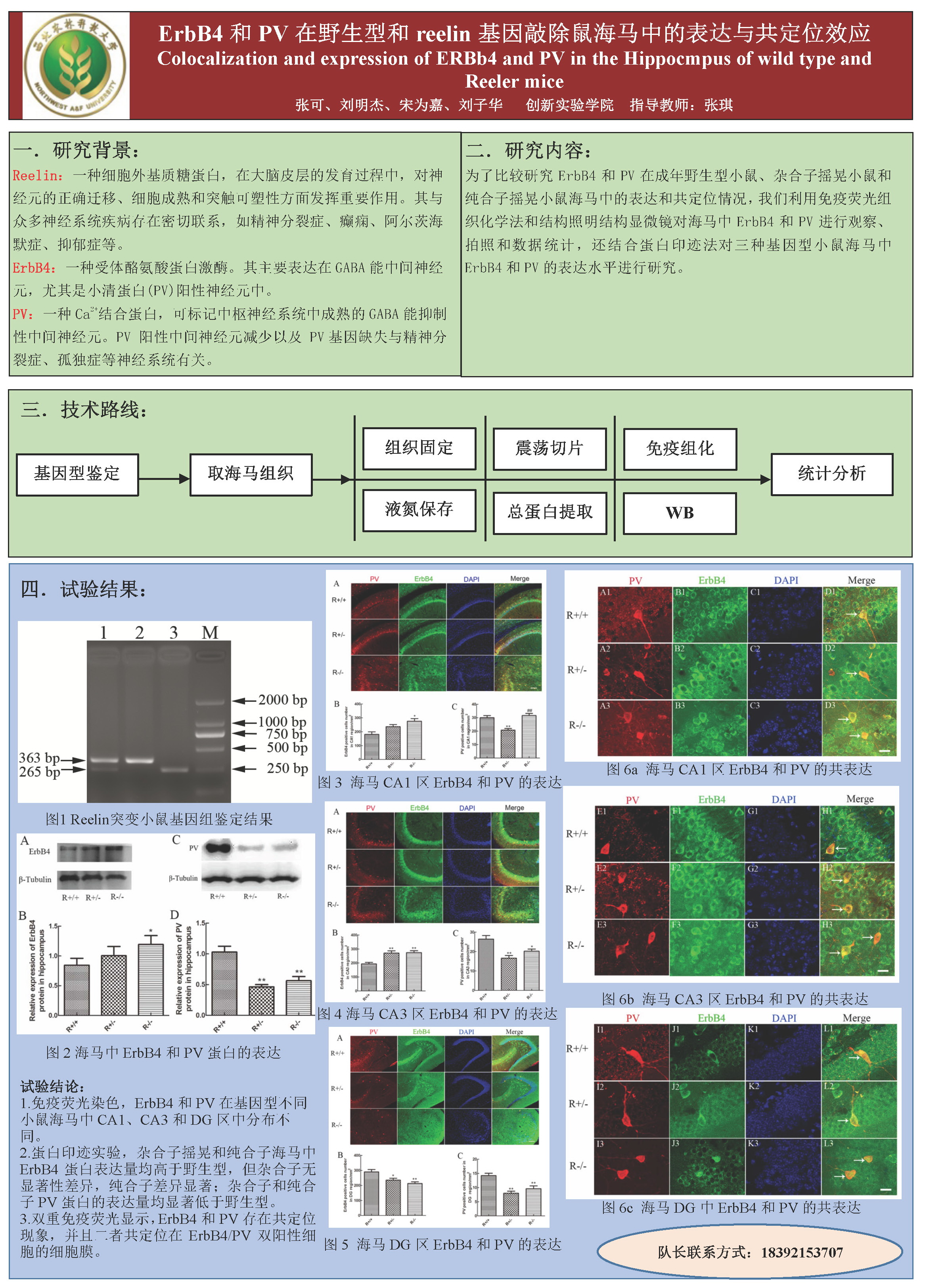 12 | ErBB4 和 PV 在野生型和reelin基因敲除鼠海马中的表达与共定位效应 | 创新学院 | 张 可 | 刘明杰 宋为嘉 刘子华 |