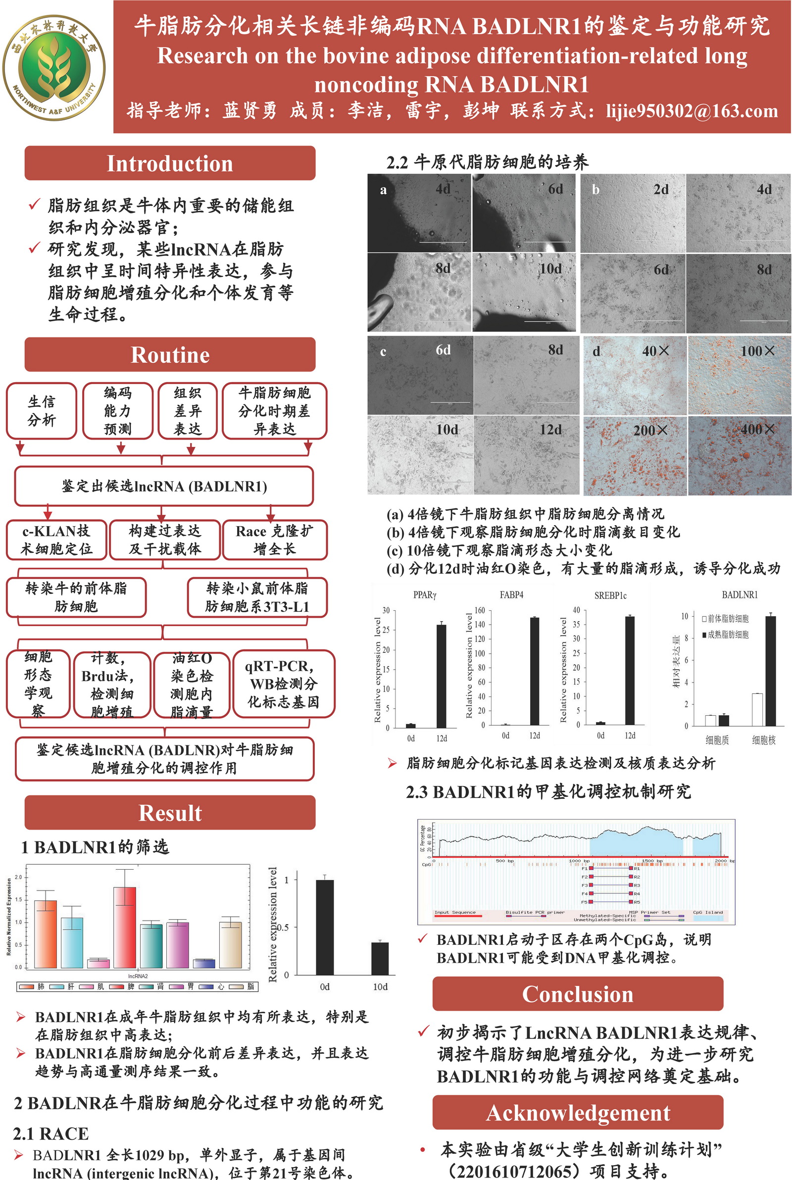 3 | 牛脂肪分化相关长链非编码RNA BADLNR1的鉴定与功能研究 | 创新学院 | 李 洁 | 雷 宇 彭 坤 |