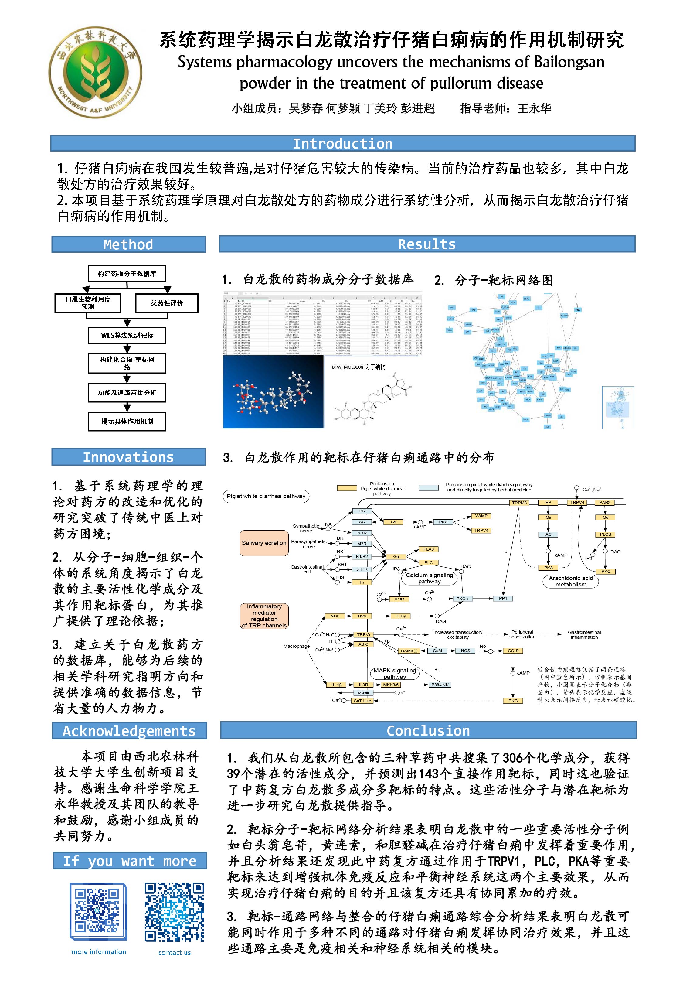 25 | 系统药理学揭示白龙散治疗仔猪白痢病的作用机制研究 | 创新学院 | 吴梦春 | 何梦颖 丁美玲 彭进超 |