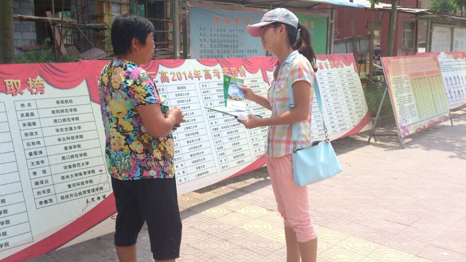 8月3日,队员们一行来到西华县第一高级中学,在和预先联系的班主任沟通后,队员们进入学生教室,利用课间时间对高三学生进行了精炼而丰富的宣传。首先,队员们对我校进行了简要的介绍,同时,向在场的同学们发放学校宣传册,赠送学校特色纪念品。之后进入了提问环节,他们对同学们询问的问题集中进行了解答。最后,在阵阵热烈掌声中,队员们结束了此次宣传。离开前,队员们在校园宣传板上张贴我校简介海报,以便更多人了解我校。
