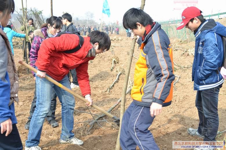 春风送暖,万物复苏,3月11日,在第34个植树节来临之际,我院生物科学(实验)103班和生物科学(实验)104班团支部同学们积极响应学习雷锋精神号召,开展了“学雷锋,为大地母亲增添一份绿色”义务植树活动。 满怀着对春天的热爱,生物科学(实验)103班和生物科学(实验)104班团支部同学们一大早就来到了西宝高速杨凌段绿化带,在领取了树苗、铁锹等工具后,便按照老师的要求开始了植树活动。同学们团结协作,挖坑、刨土、浇水等各项工作有条不紊地进行着,干得不亦乐乎,一个小时左右的时间就植下了六十多棵树。一上午的劳动,大家不但给大地母亲带来了一棵棵绿色的希望,更在自己的心里种下了一棵属于梦想的参天大树。 此次植树活动不仅培养了同学们的环保意识,美化了环境,同时,也使同学们的实践动手能力得到了提高,体会到了劳动的快乐,在心中留下了美好的回忆。