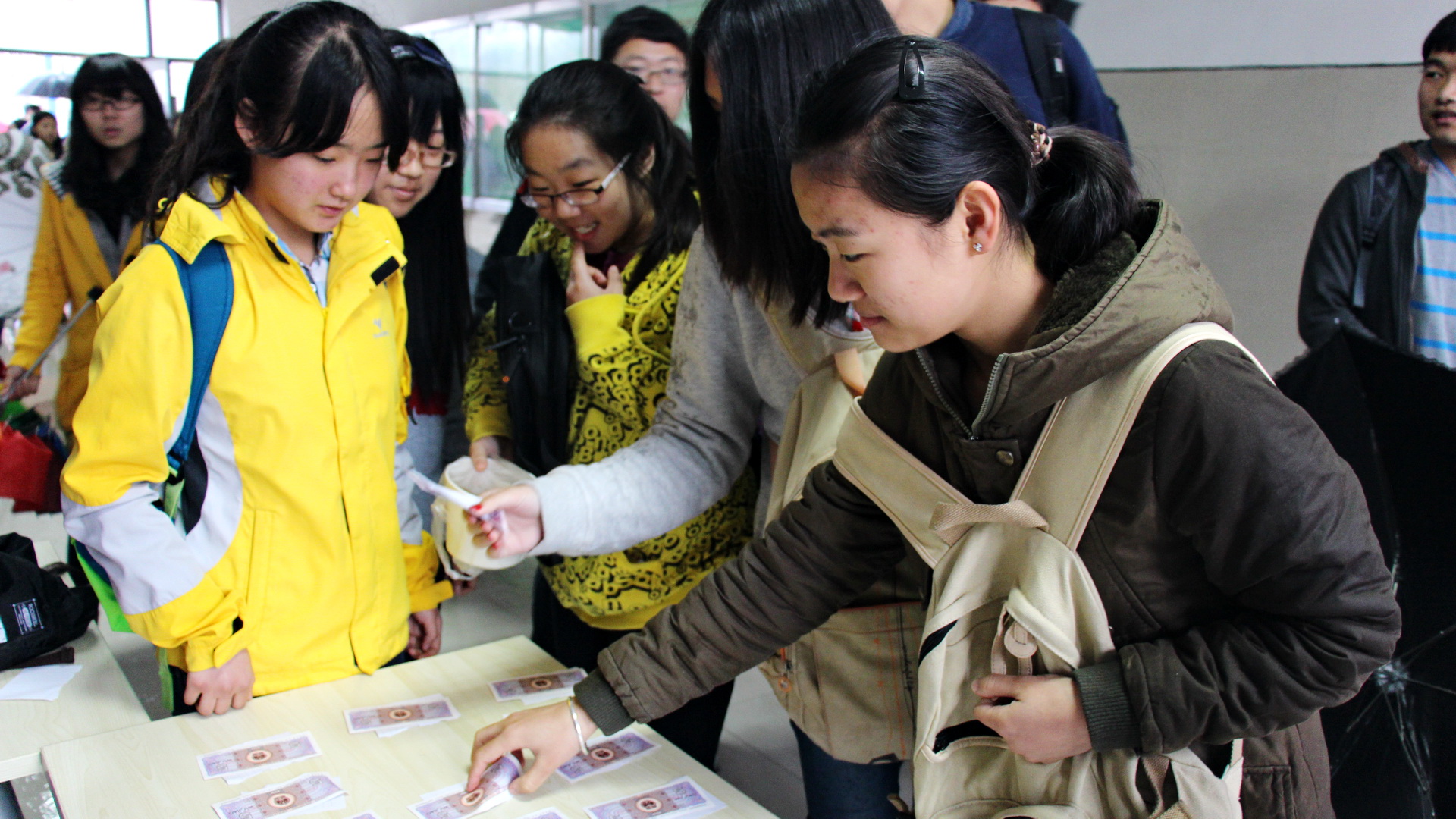 学生翻开纸签上的祝福与惩罚