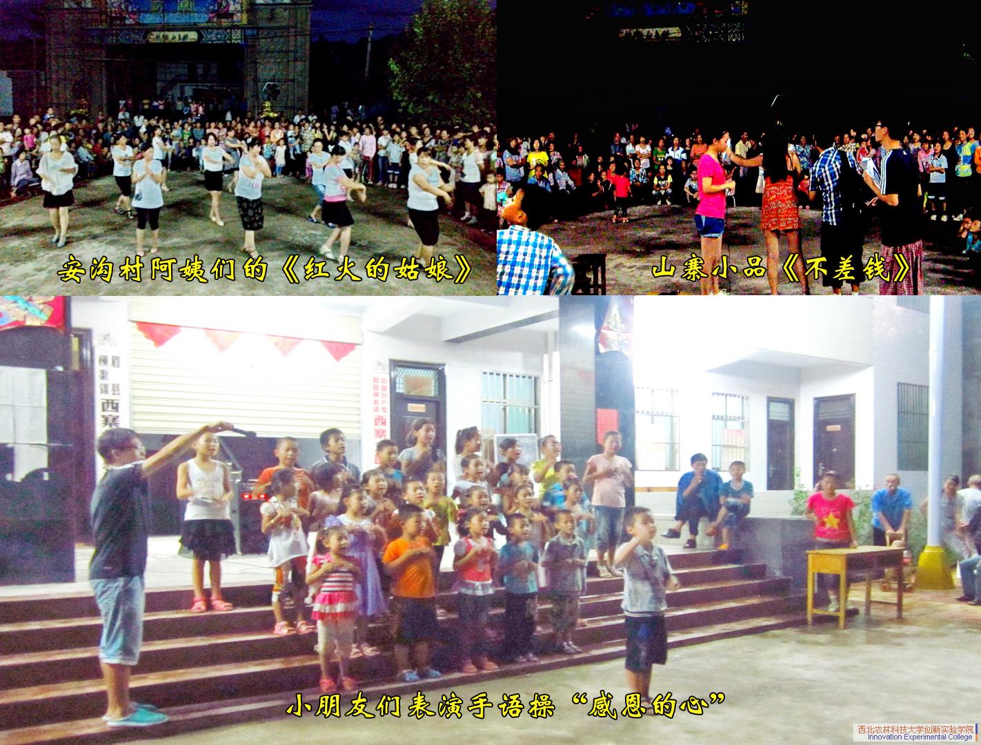 2013年7月22日晚,我院联合生命学院组成的三下乡服务队在眉县西寨村举办“夏末话情”文艺汇演晚会,吸引了周围近千名村民前来观看。