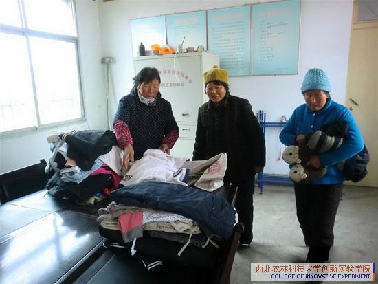 19日清晨,我院的村主任助理和志愿者将募捐到的衣物分为两批,分别运往北杨村和乔家底沟,并在村委会和当地妇联及热心村民的帮助下将衣物分类。之后,妇联主任与志愿者按照困难程度将衣物进行分配。20日上午,衣物已顺利发放到每位困难户手中。