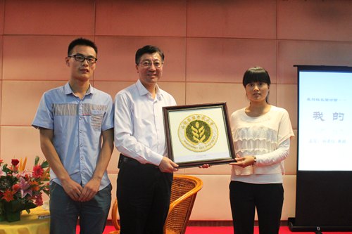 报告会现场,同学们还送上了亲手为孙校长制作的一件礼物——一幅用五谷杂粮拼成的我校校徽,也借此表达对我校为国家五谷丰登作出更大贡献的美好祝愿。在报告会的尾声,校长与同学们齐唱《年轻的朋友来相会》,共同祝愿,再过二十年,在我校建校100年之际,实现建成世界一流大学的梦想。