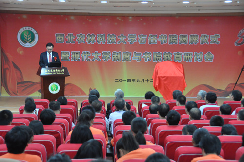 9月12日下午,右任书院揭牌仪式在北绣山活动中心举行。常务副校长赵忠、党委副书记马建华,香港中文大学和国内相关大学书院负责人,于右任先生亲属及陕西于右任书法研究会名誉会长钟明善、陕西三原于右任纪念馆馆长巨志忠,兄弟院校代表,中国工作标准研究院、江苏校友会、咸阳校友会、山西校友会、甘肃校友会等校友代表以及学校有关部门负责人和师生代表参加揭牌仪式。马建华主持仪式。