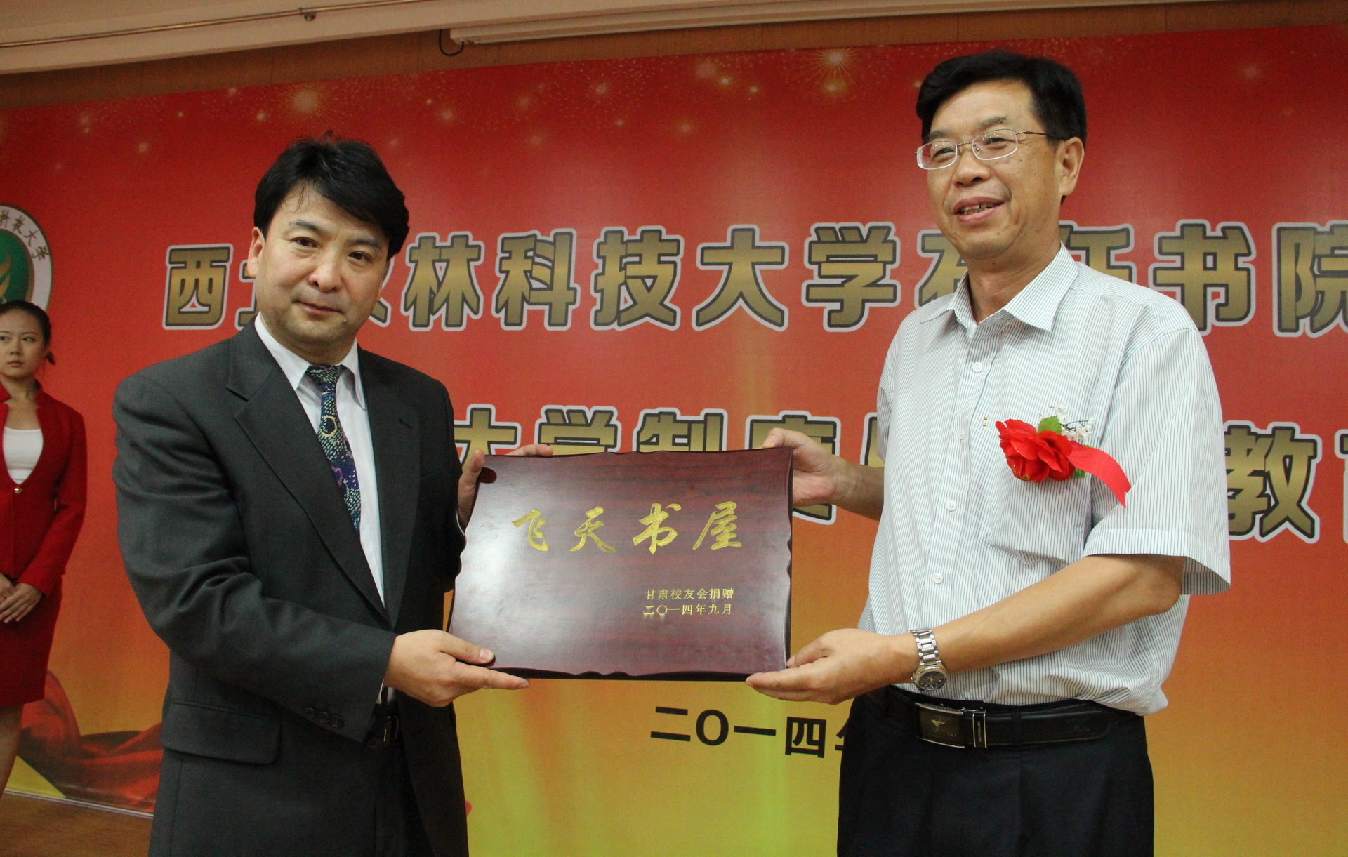 仪式上,甘肃中天集团捐赠了右任奖学金,中国工作标准研究院捐赠了“圆通科学工作坊”,江苏校友会捐赠了“江南书屋”,甘肃校友会捐赠了“飞天书屋”,山西校友会捐赠了“北岳书屋”,咸阳校友会捐赠了“秦汉书屋”。