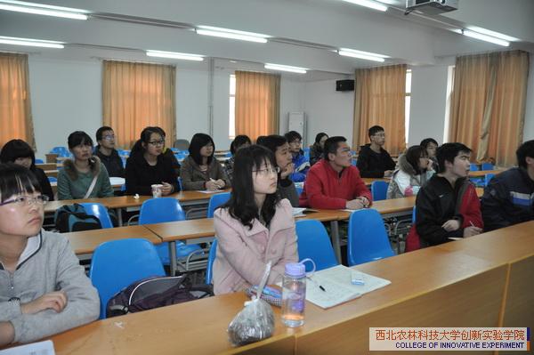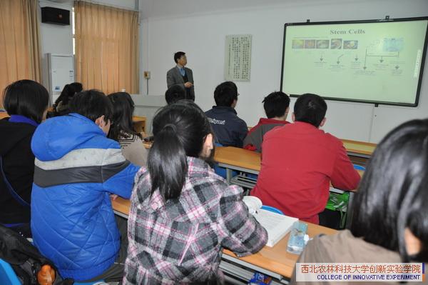 在第二场的报告中,曾文先教授就精原干细胞和它的发展过程,以及精原干细胞的生物学特征、移植、培养及其在动物转基因方面的应用做了详细介绍。曾教授还为学生分析了精原干细胞在基础研究和畜牧生产中的应用前景,使同学们对这些都有了深刻的认识。同学们向曾教授咨询了自己关心的专业选择和出国等问题,曾教授耐心认真的一一作答。