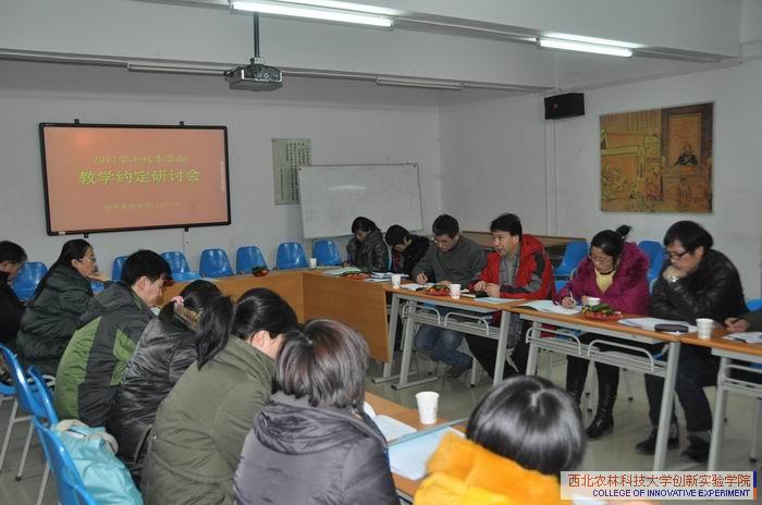 12月12日,创新实验学院在学院一层多媒体教室开展了2012学年秋季学期教学约定工作研讨会,来自生命科学学院、理学院、外语系等参与教学约定工作的二十余位任课教师、教务处领导和创新学院全体领导和教学工作人员参加了研讨会。
