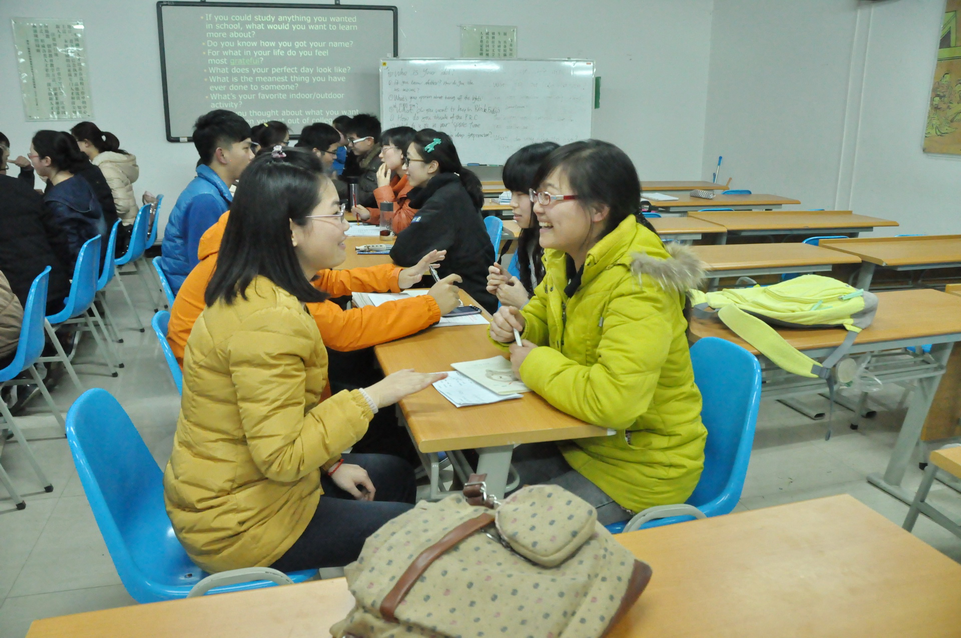 同时,外教Nathan还与学生们分组进行面对面口语提高课程,讨论主题新颖,与时事接轨,练习口语的同时提醒着同学们要关注英语新闻。这种面对面座谈的方式,促使学生积极用英语思考问题,用英语表达观点,提高了口语水平,了解了西方文化,对诸多热点问题引发了深入的思考。