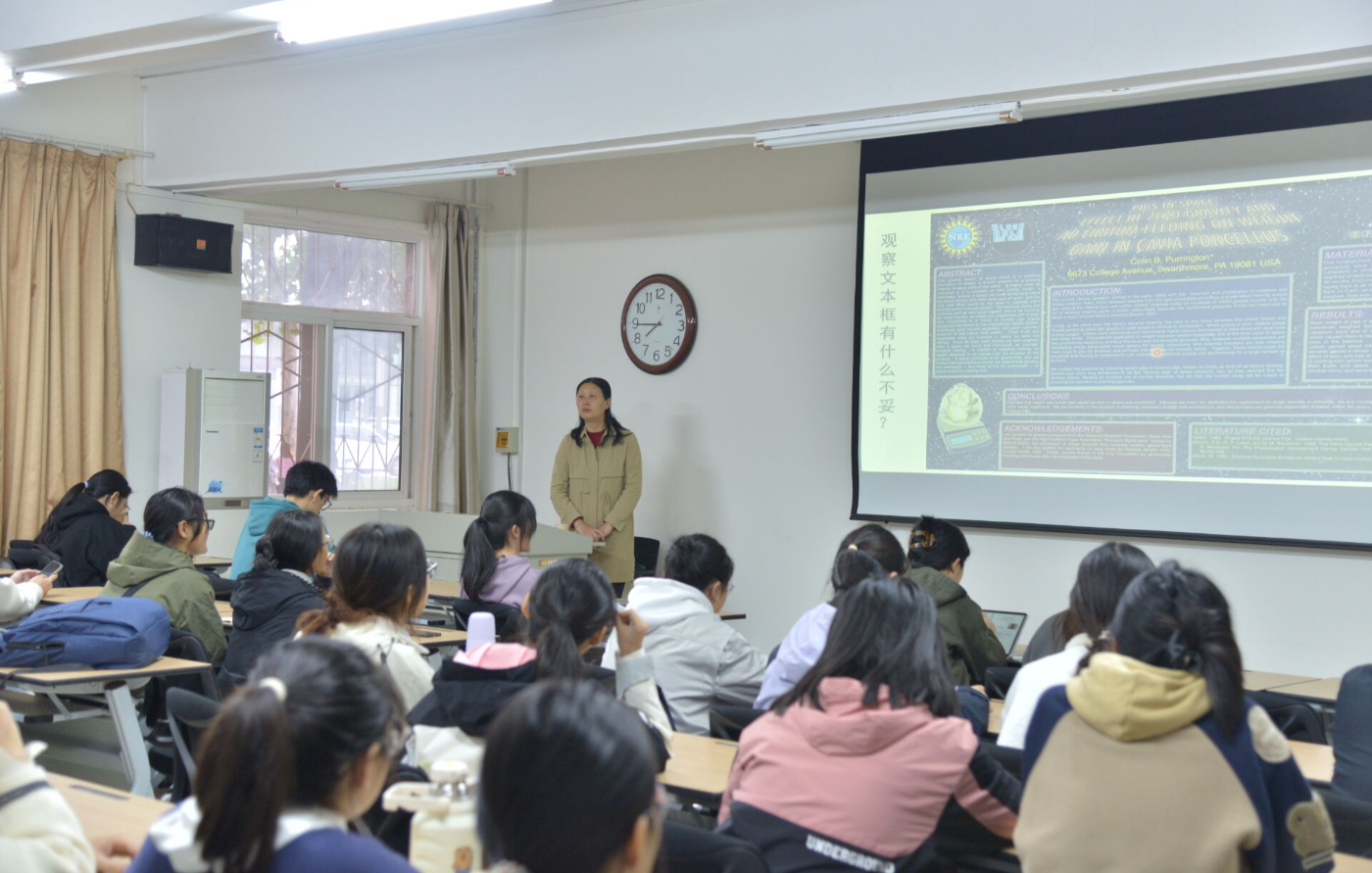 为帮助同学们掌握学术海报设计核心技巧,提升参赛作品质量,助力学术海报Poster竞赛顺利开展,10月12日下午4时,创新实验学院在学院一楼西侧多媒体教室举办学术海报设计与制作专题报告会。本次报告会特邀多年指导海报大赛的郑惠玲教授主讲,来自全校不同专业的近百名学生积极参与,现场学习氛围浓厚。