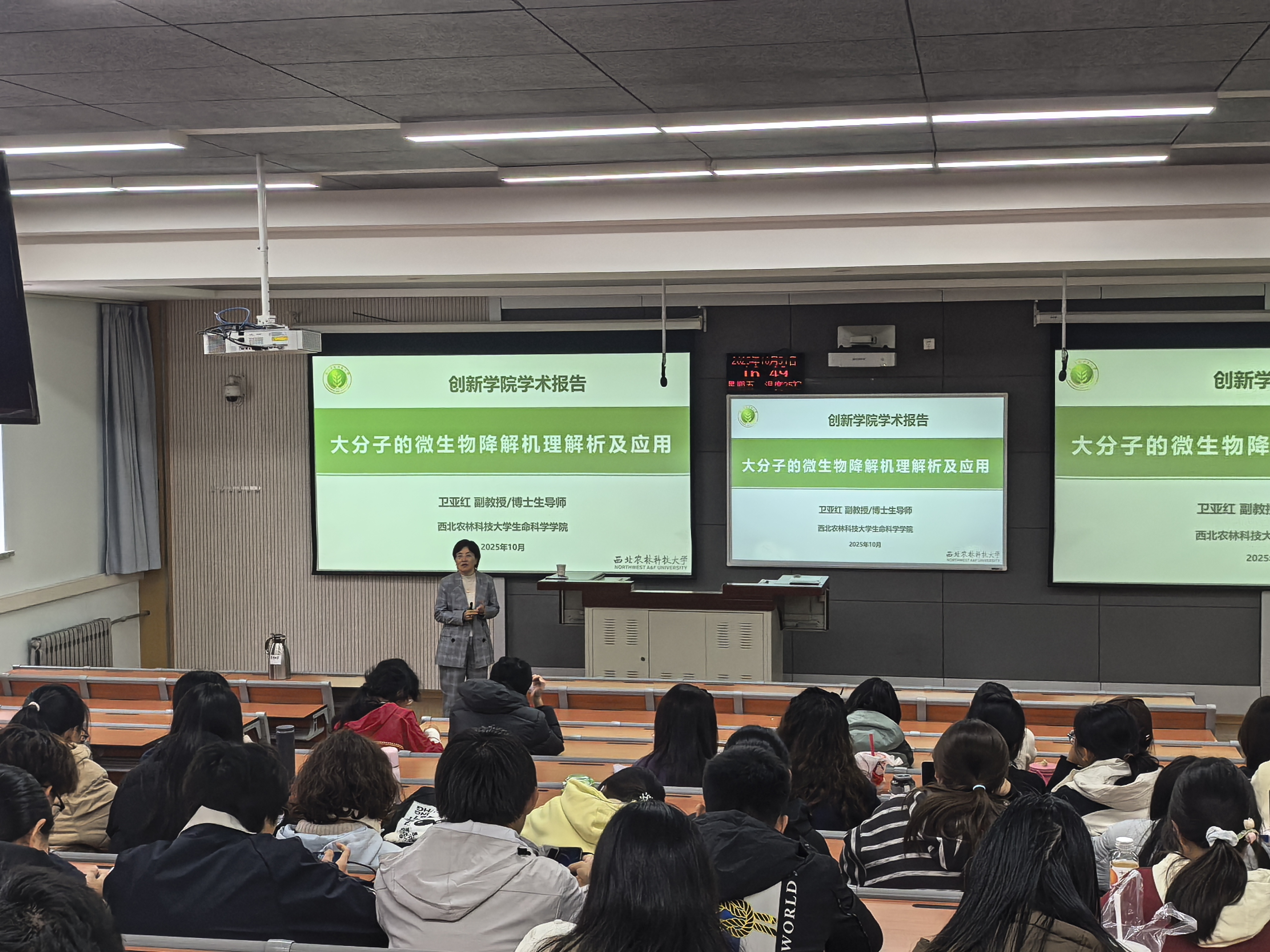 随后,卫亚红副教授从农学与生命科学的交叉视角,介绍了当前生命科学在农业可持续发展、生物资源利用、环境健康等方向的研究热点。她结合自身在微生物降解研究与资源挖掘领域的实践,阐述了生命科学学科服务国家战略、推动产业转型的重要意义,并鼓励同学们培养创新思维、关注学科融合、拓宽科研视野。